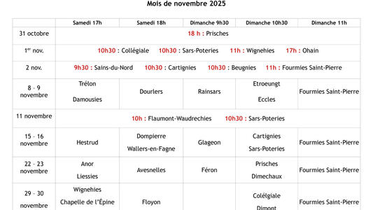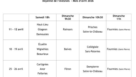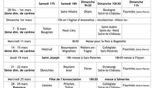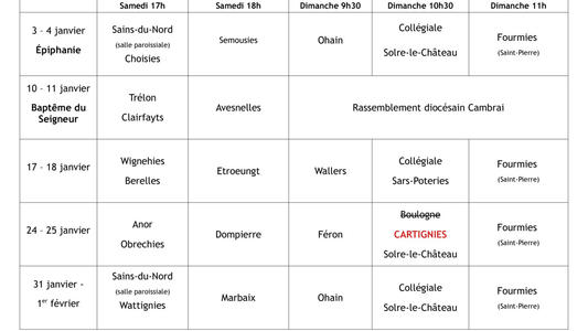 Veuillez trouver les horaires et lieux de messe pour notre doyenné